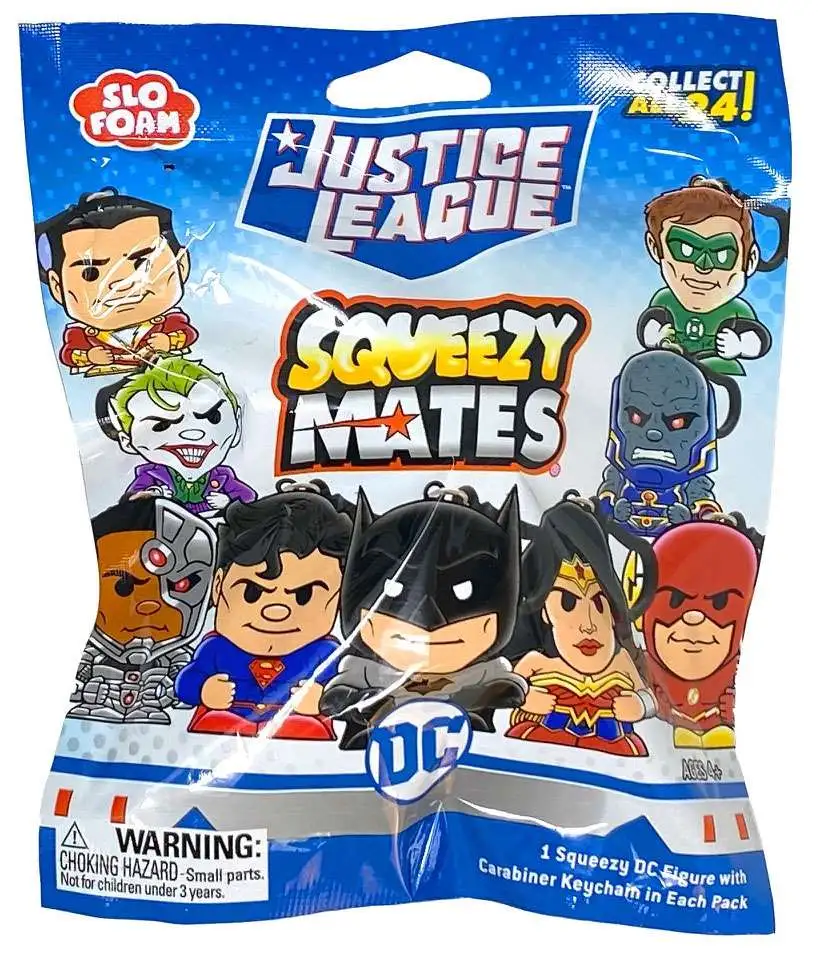 This squeezable lineup features all your favorite DC Comics heroes and villains. Attached carabiner clip makes it easy to clip them to a backpack, belt and more. The figure inside each blind pack is random, which adds mystery and fun to each pack!