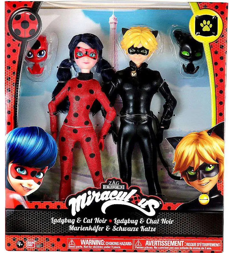 Miraculous fashion dolls Ladybug and Cat Noir allows girls to recreate their favorite Ladybug and Cat Noir scenes. They are 10.5 tall and wear their signature looks. They come with their Kwamis Tikki and Plagg for even more Ladybug and Cat Noir play!