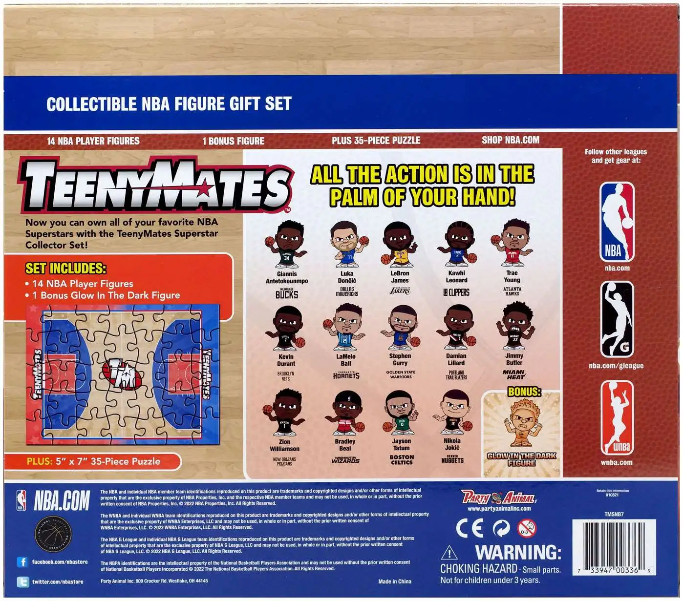 Set Includes: 14 NBA Player Figures + 1 Glow in the Dark Bonus Figure.