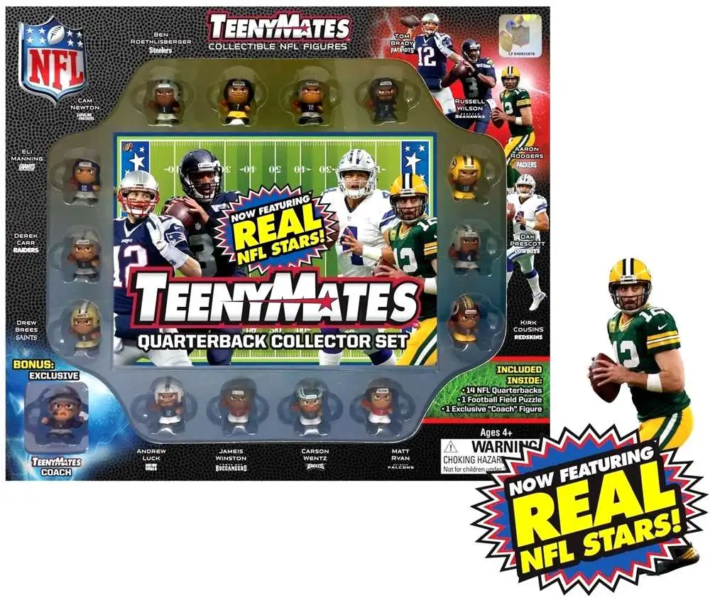 New to Series 6! The Quarterback Gift Set includes 14 of the NFLs top shot-callers, a 35-piece Football Field Puzzle and an exclusive NFL Coach figure found only in the gift set.