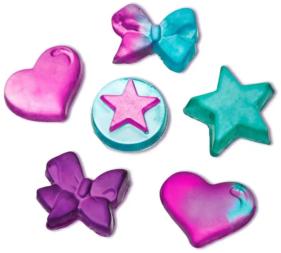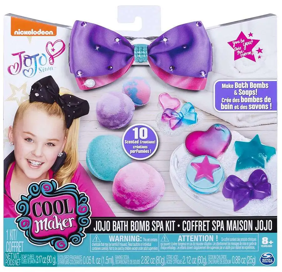 Have the ultimate spa day with the Cool Maker JoJo Siwa Bath Bomb Spa Kit! You can easily mix and shape to create 10 scented JoJo spa creations, including six soaps and four bath bombs! Customize your bath bombs – add drops of scented coloring to your mixture to make a single or multi-colored bath bomb. With the easy-to-use press, you can press and twist to create perfect bath bombs! To make JoJo-themed soaps – like a bow, heart and star – melt the soap cubes in the microwave with the help of an adult, and stir in a drop of coloring. Pour the mixture into the soap tray molds and place in the freezer for 20 minutes! When you’re finished creating, pop a soap or bath bomb into one of the included gift bags, wrap with a bow gift tag and share with your friends – or, invite them over for a JoJo spa sleepover and pop on the cute bow sleep mask! Pamper yourself and have a relaxing spa experience with the Cool Maker JoJo Bath Bomb Spa Kit!