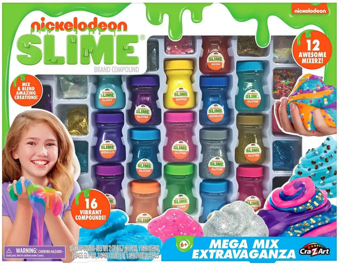 Dive into this super sensory Nickelodeon Slime experience! Includes multiple trendy Slimes all in 1 awesome kit! Soft and lightweight Fluffy Slime, smooth and spreadable Butter Slime, sparkling Glitter Slime, vibrant Neon Slime, and glistening Metallic Slime! Thats not all this kit comes with 12 incredible Slime add ons. Top these super Slimes with glitter, confetti, beads and more! Its super gooey fun!