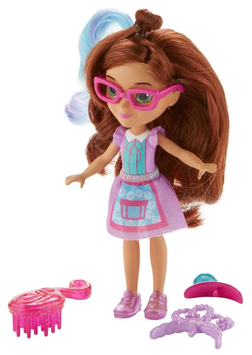 Cindy is the resident baker in Friendly Falls (and Laceys younger sister)! Pop-In Style Cindy comes with bakery-themed Pop-Ins (apron and cupcake) and a multi-colored hair extension! Pop in her hair accessories, add her stylish sunglasses, and mix and match with Pop-In Style Sunny, Rox and Blair! Cindy measures 6 in (approx. 15cm) tall. Pop-In Style dolls are sold separately and subject to availability. Sunny Day Pop-in Style Cindy: