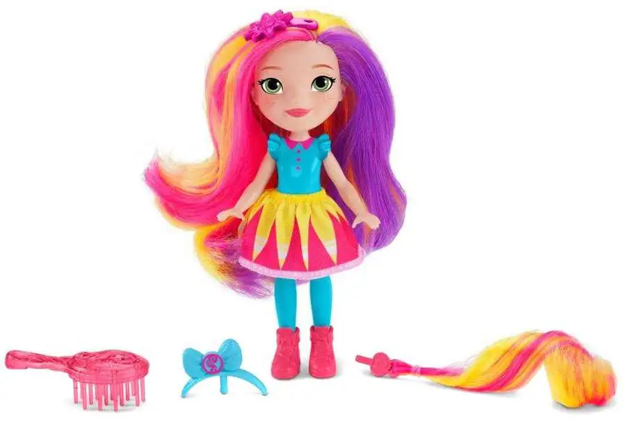 Sunny is the best friend and the best hairstylist in Friendly Falls. With her hair tools and styling skills, she’s always ready to save the day, one hairdo at a time! Pop in her hair accessories to create your own Sunny style or mix and match with her best friends Rox and Blair! Sunny measures 6 in (approx. 15 cm) tall. Pop-In Style Rox and Blair are sold separately and subject to availability. Sunny Day Pop-In Style Sunny: