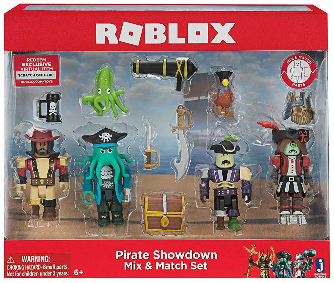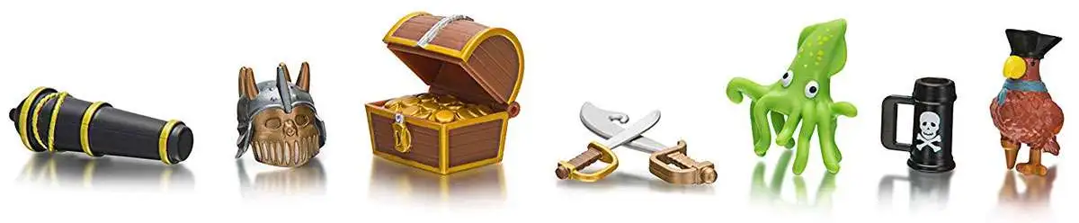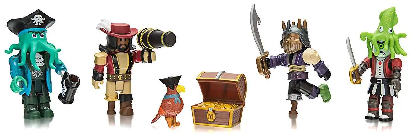 Ahoy, ye landlubber! Build your very own crew of pirates by mixing and matching different parts and accessories from your entire Roblox toy collection, then come sail the seven seas in search of treasure! Will you be a ruthless pirate or an adventurous captain? Imagine your own epic seafaring adventure with this unique set of figures.