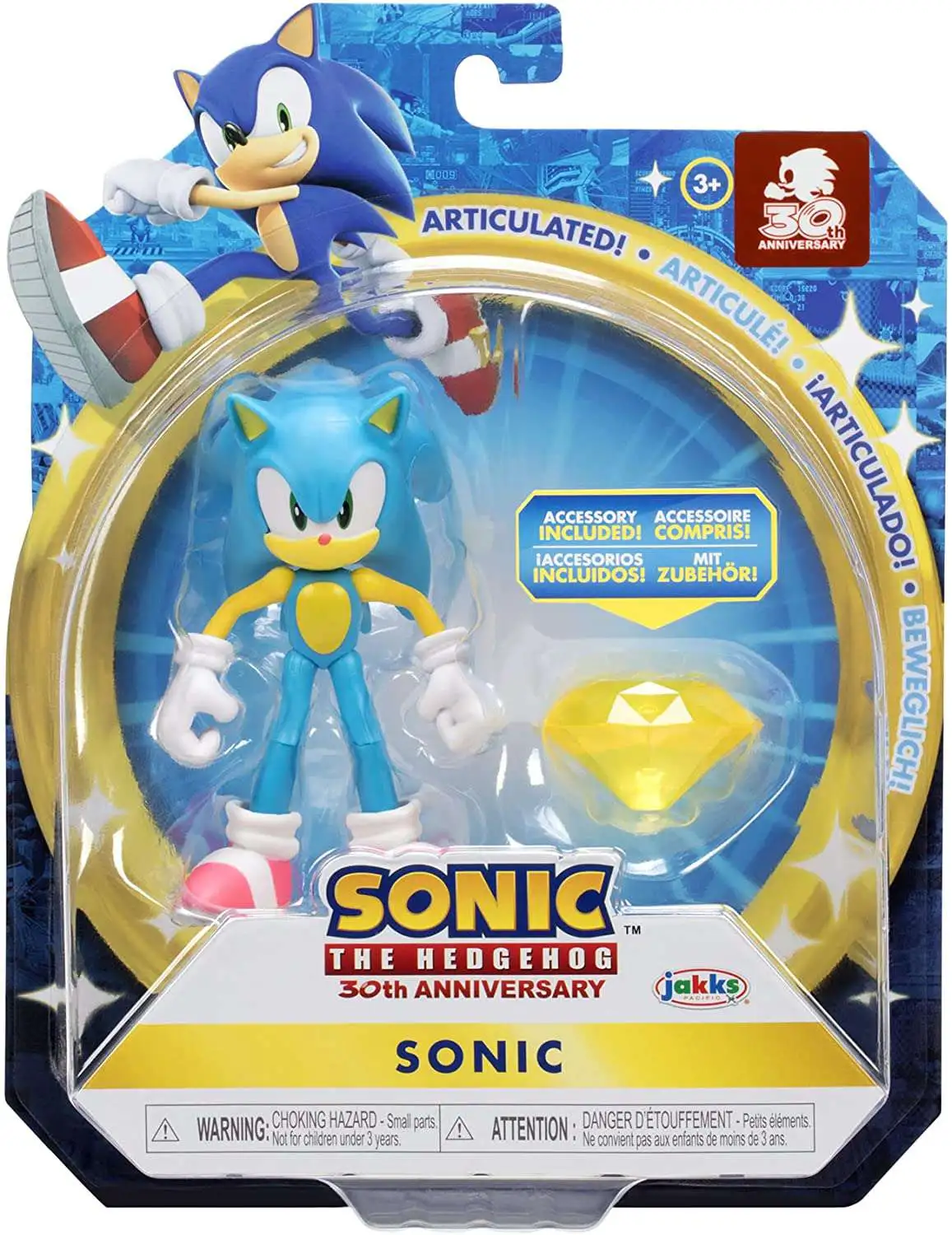 Sonic The Hedgehog 4-Inch Action Figure Modern Sonic with Yellow Chaos Emerald Collectible Toy.