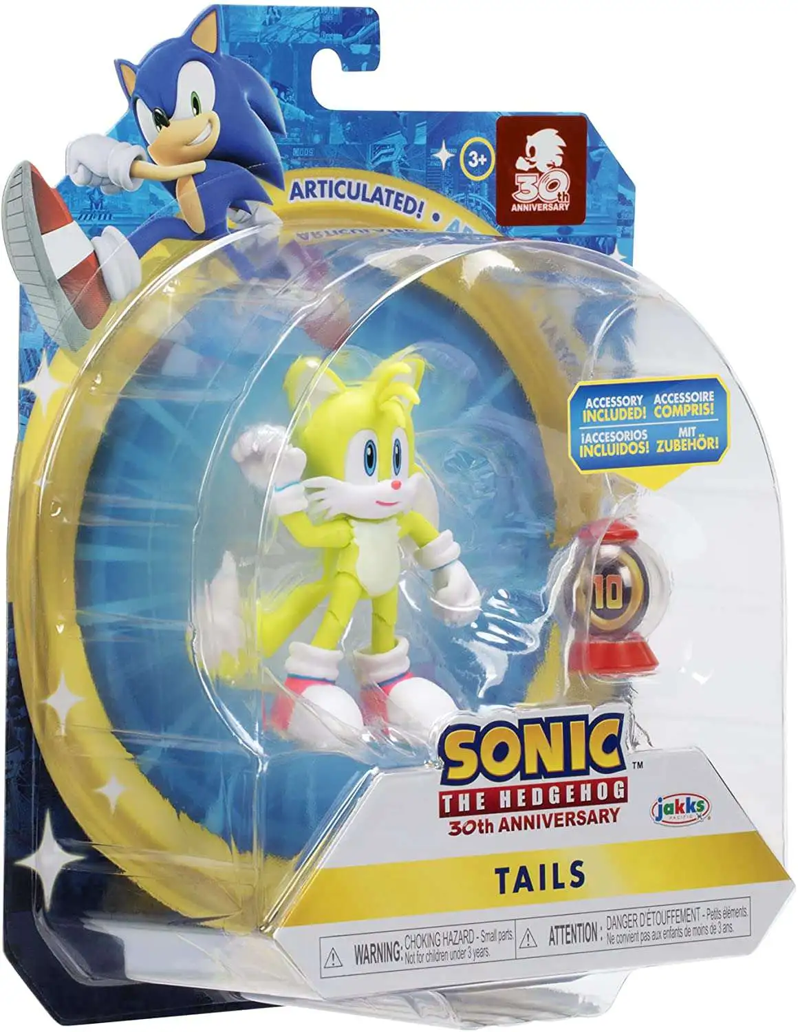 Sonic The Hedgehog 4-Inch Action Figure Modern Tails with Ring Item Box Collectible Toy.