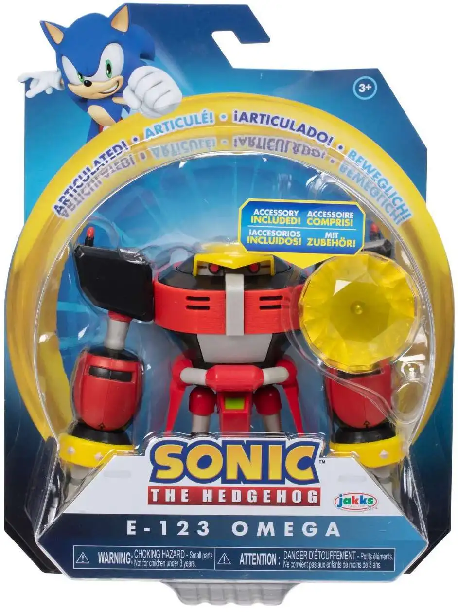 The Omega four-inch articulated figure is sure to be a hit with kids and Sonic fans! This authentic figure has articulated limbs and comes with a Yellow Chaos Emerald accessory. Pose the figure with its accessory or collect them all to build your own Sonic world with the Green Hill Zone Playset and Studiopolis Zone Playset, (sold separately). You can recreate the action from the games with this extraordinarily detailed figure and start your collection today, (each sold separately).