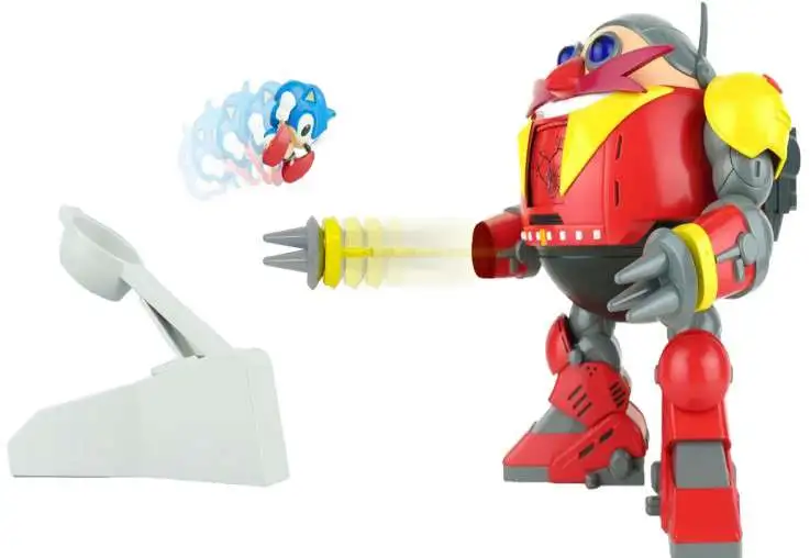 The set includes a nine inch scale Giant Eggman Robot, a two and half inch Spin Attack posed Sonic figure and catapult
