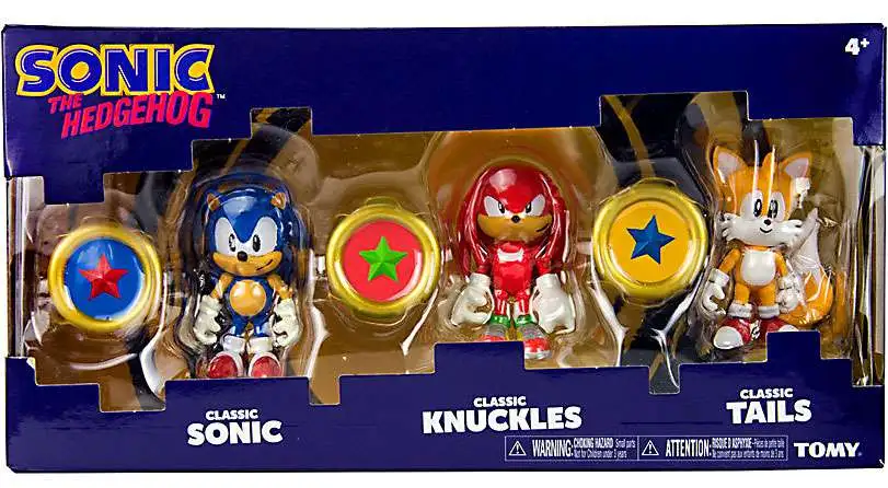 Comes with Sonic, Knuckles, and Tails articulated figures.